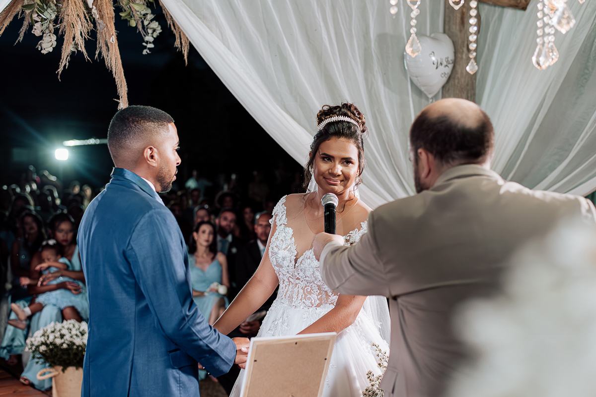Um amor para a eternidade: Daniele e Marcos celebraram sua união em uma cerimônia encantadora ao pôr do sol, rodeados pela família. Emoção e amor transbordaram em cada momento especial.