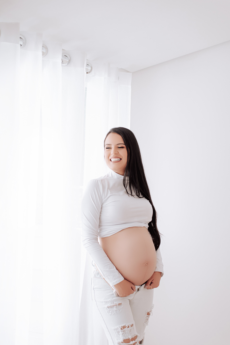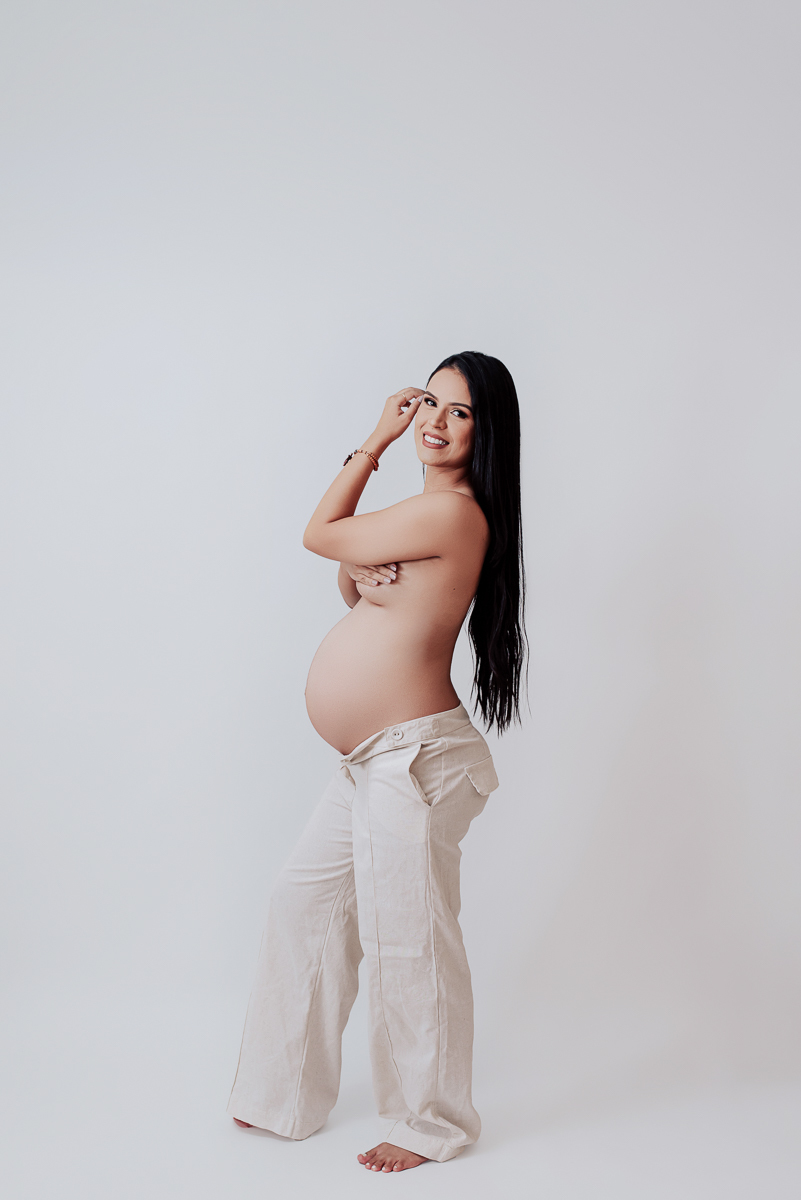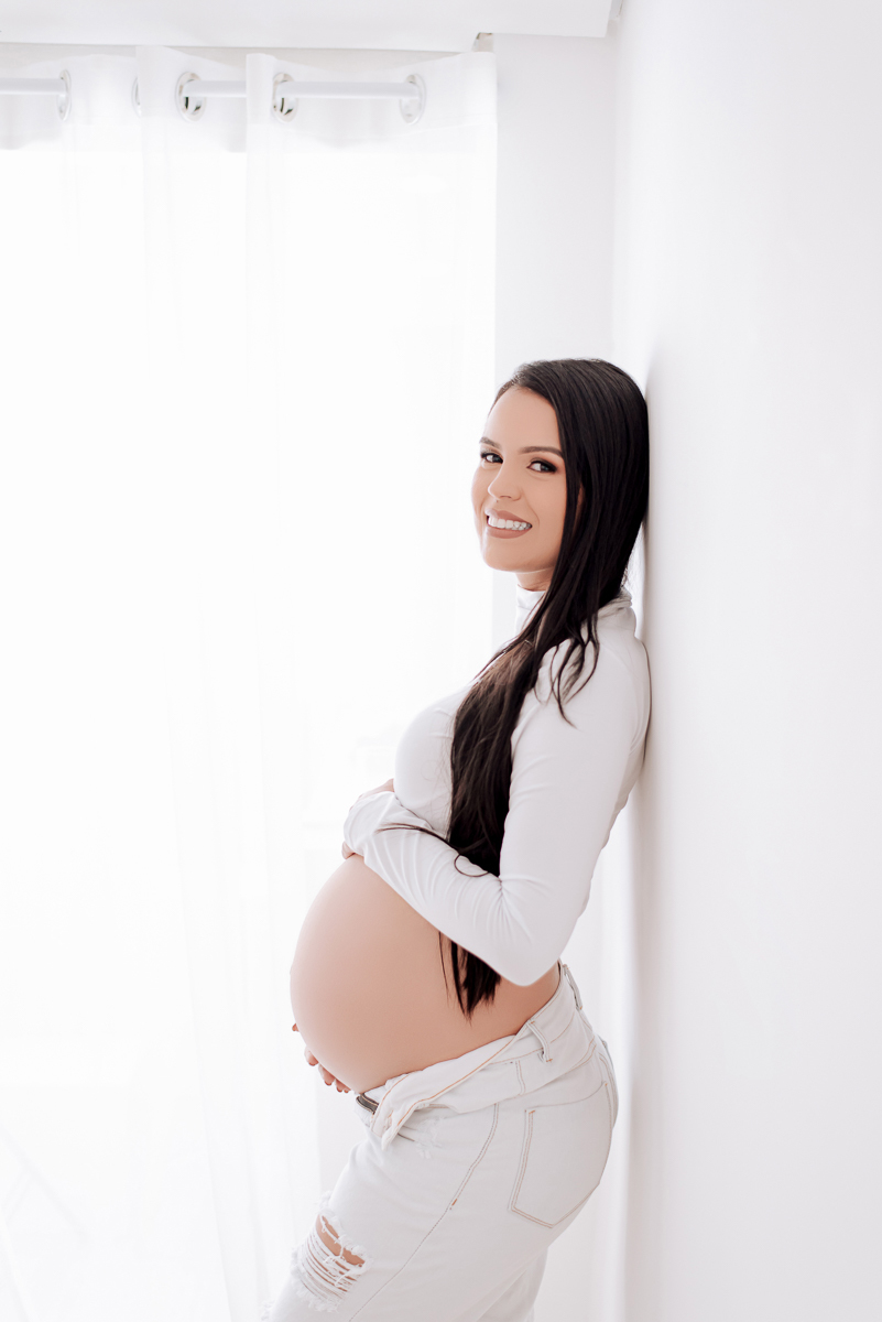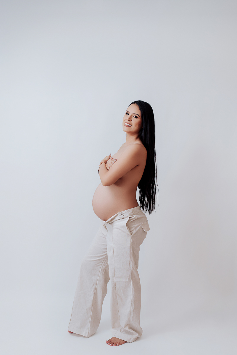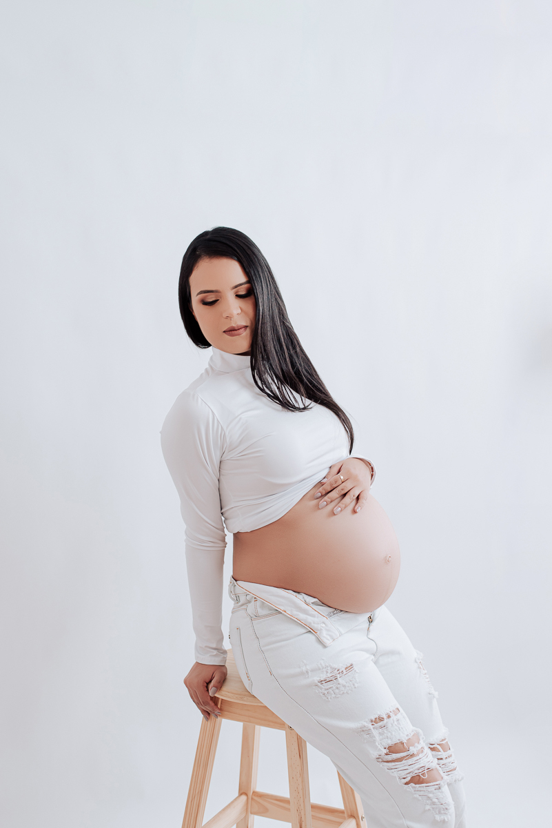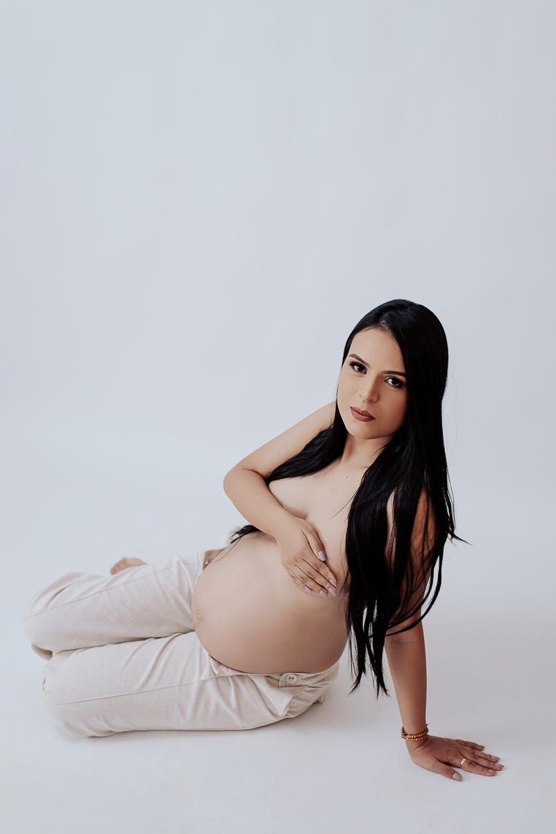 Nosso estúdio foi preenchido com a magia da maternidade durante o ensaio gestacional de Ingrid Alves. Cada foto é um testemunho do amor de ser mãe.