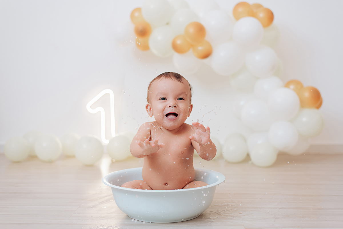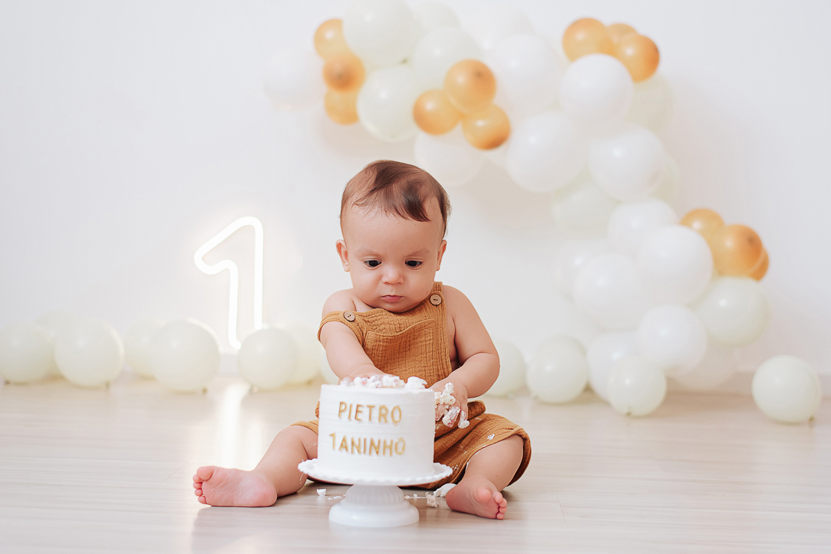 Com um sorriso contagiante, o Pietro celebra seu primeiro ano de vida de uma maneira muito especial, mergulhando de cabeça em um bolo delicioso! Que este momento seja apenas o começo de uma vida repleta de doçura e aventuras.